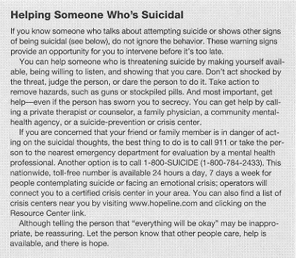 severely depressed person may make an attempt. All too often, friends and family