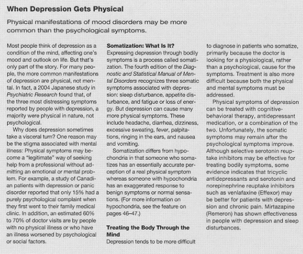 to these disturbances in mood and cognition (thinking), patients with major depression