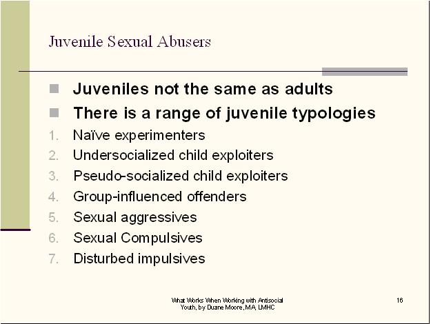 9 What are tdifferences between juvenile and adult sexual abusers?