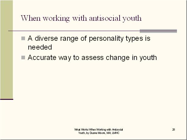 How do you know when the conduct disordered youth is making progress? To select and enter your answer go to Test.