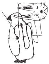 However, because this alien was more aggressive and bigger than the other one, he succeeded in getting away. Since hurt feelings are so commonly buried under a layer of angry feelings, Oaklander (1988) says that it is very threatening and difficult for children to get through the angry surface feelings to allow full expression of the authentic sub-surface feelings. Through drawing, and verbalizing what he saw, Thomas was able to find ‘acceptable’ ways of dealing with feelings of anger whilst paving the way for all the pain he had so far denied. When asked to find a third shape of any sort, Thomas outlined a boat, followed almost immediately by a penguin, drawn very faintly. The boat was to enable the penguin to drift out to sea. Was the boat offering Thomas security; a container to further protect him from the sensation of pain?