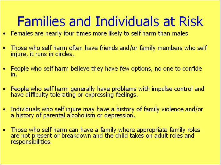 QUESTION 6 What is one reason why the likelihood of self injury increases when a cutter knows his or her family member or a friend self injures?