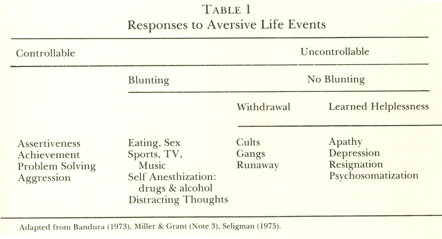 Seligman, 1975). These individuals may try to minimize the intensity of the aversive